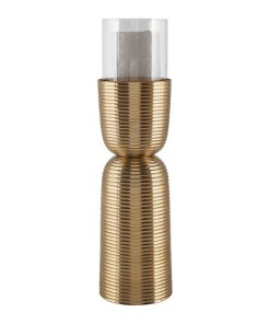 Portavelas Grande en Metal Dorado con Cúpula de Cristal-Altura 41 cm