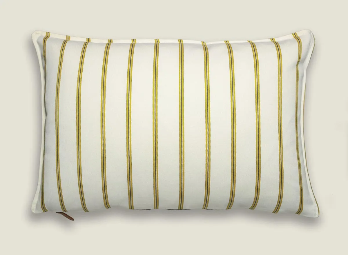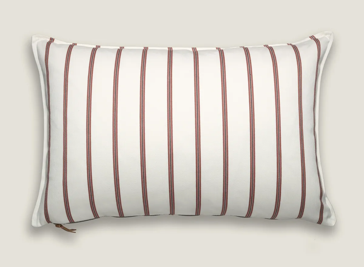 Cojines de algodón con rayas tipo ticking stripes en colores alegres. Acabado con pestaña discreta que añade refinamiento. Ideal para espacios luminosos, aportando un toque de estilo coastal chic.