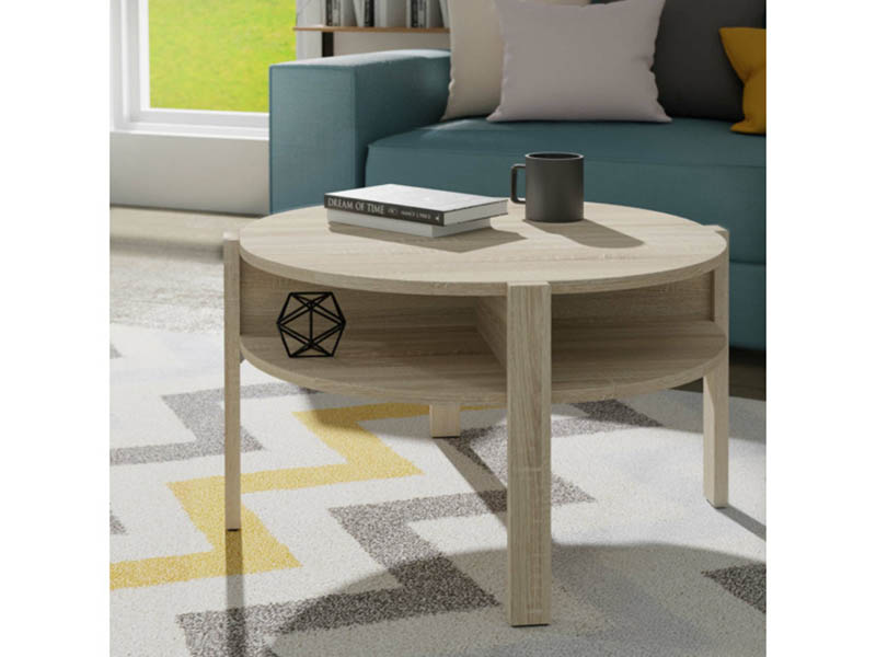 Mesa de centro redonda de diseño moderno en color sonoma.