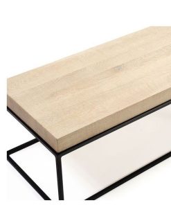 Mesa de Centro Rectangular en Roble Blanqueado y Metal Negro