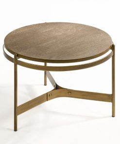 Mesa Auxiliar Redonda de Roble con Estructura de Metal Bronce