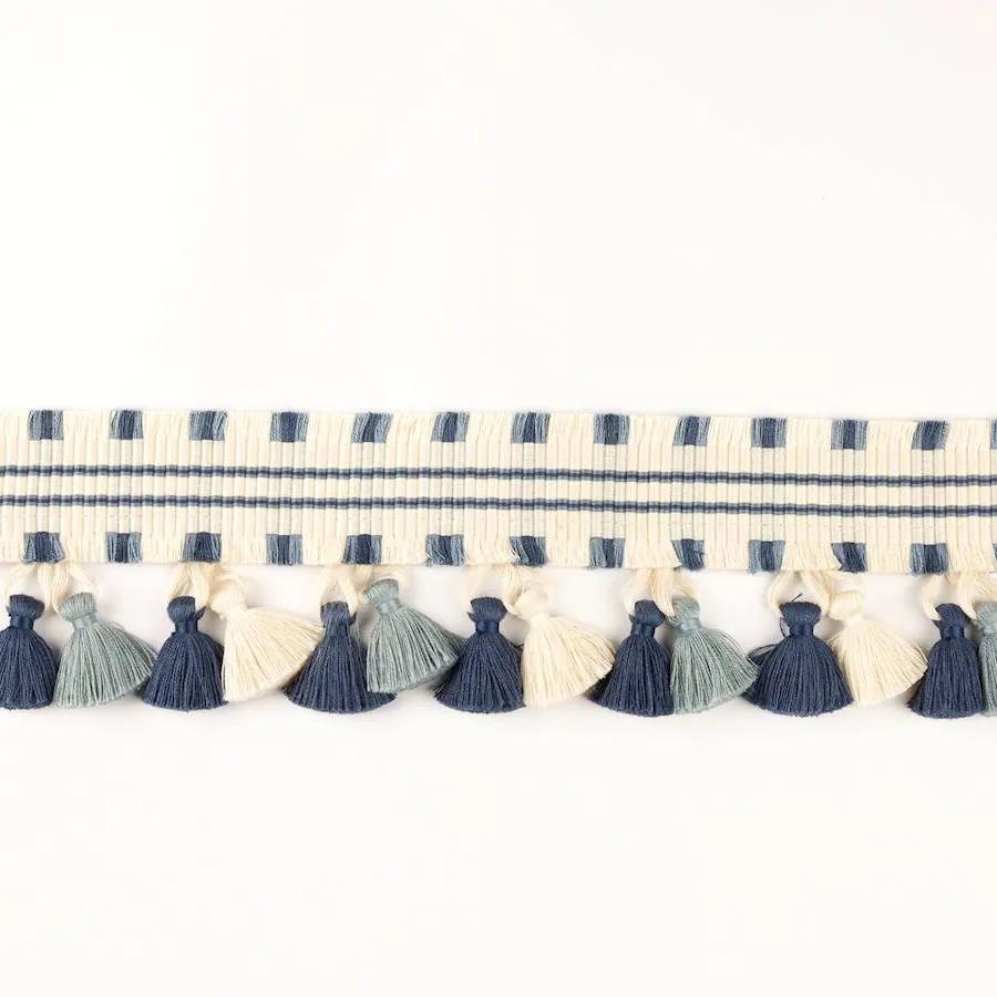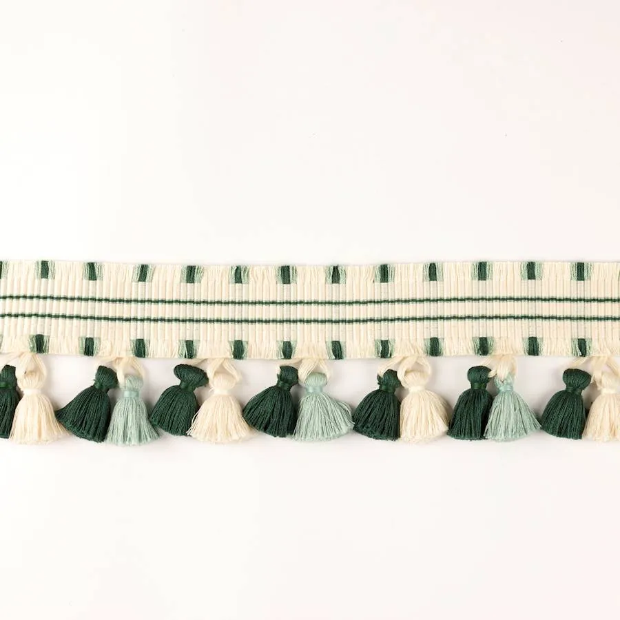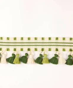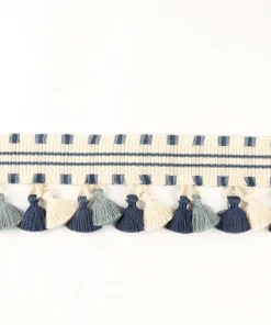 Pia, una cinta gráfica pero versátil con borlas tonales a juego, presenta un carácter orgánico con una parte central acanalada táctil y bordes deshilachados. Queda fantástico cuando se aplica vertical u horizontalmente con sus finas rayas y sus bordes con flecos cortados a juego.
