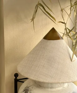 Presentamos nuestra nueva pantalla de lino con pico decorativo de metal, una fusión perfecta de elegancia natural y detalles modernos. La suave textura del lino proporciona un toque cálido y acogedor, mientras que el pico decorativo de metal añade un elemento sofisticado y contemporáneo.