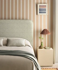 Un clásico; Orsin representa una colorida raya en bloque delineada por una raya de color contrastante, un acento contemporáneo que distingue a esta raya. La irresistible textura calcárea y la profundidad del pigmento se crean mediante el método tradicional de impresión en superficie, un medio que celebra los matices únicos de la artesanía.